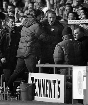 – McCoist (Rangers) and Lennon (Celtic) have a verbal confrontation on the sidelines.