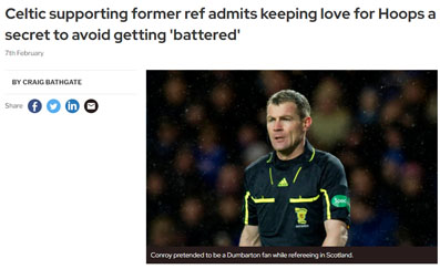 Conroy refereed under the guise of being a Dumbarton fan despite having no affiliation with the club.