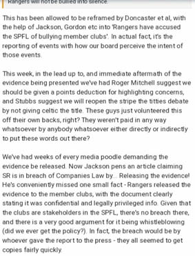 This poster (below) on a sevco forum, for example, was doing so well on a rant about how everybody in the world was trying to shove his club into a full sized coffin that he accused Alan Stubbs of trying to reopen the ‘stripe the titties’ debate.