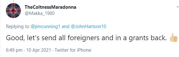 On the subject of letting people through your borders, put the Coltness Maradonna (below) in charge. He knows exactly how to treat anybody who wants to escape the misery of their stupid bandana republic and move to, er, Coltness.