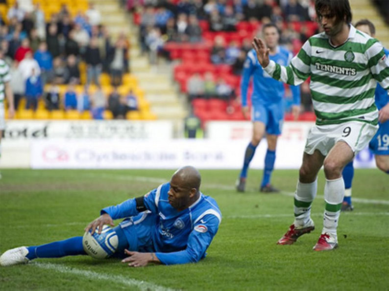 But with Brines in charge of any fixture there was always the possibility that things could take a turn for the bizarre quickly, and so it proved as the 70th minute approached. Giorgios Samaras challenged St. Johnstone defender Michael Duberry in the home side’s penalty box and the latter collapsed like a sack of spuds.