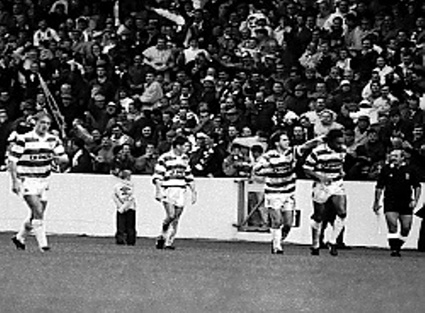 The team, meanwhile, had stuttered and stumbled on. Between October and February Celtic managed just four league victories in 17 games. The Ne’erday fixture at Ibrox had been a predictable disaster (0:2) and this debacle was followed by a turgid 1:1 draw at Celtic Park against Hibs, Peter Grant salvaging a point with a cynical last man foul in the dying minutes.